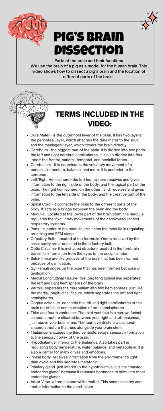 We made this website for the purpose of giving credible information about anatomical positions and pig brain dissection to students who want to pursue medicine in the future.